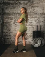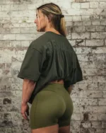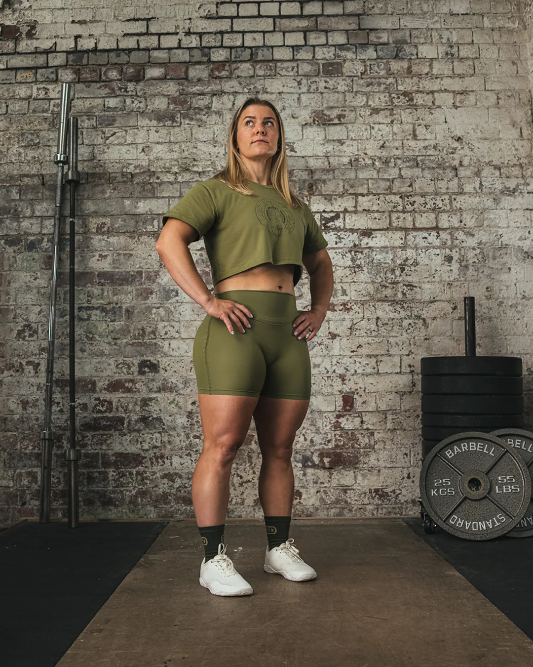 กางเกงขาสั้นเทรนนิ่งออกแบบมาเพื่อประสิทธิภาพสูงสุด มาพร้อมเอวสูงพิเศษทรงโค้งที่ช่วยทั้ง ซัพพอร์ตและเสริมสไตล์ ผลิตจากผ้าไนลอน-ไลคราผสมที่ให้สัมผัสนุ่มเหมือนฝ้าย (cotton-touch) มีความยืดหยุ่นสี่ทิศทาง (four-way stretch) และเนื้อผ้าแบบ squat-proof ช่วยให้มั่นใจได้เต็มที่ระหว่างการฝึก